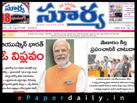 Surya ePaper PDF Free Download every morning on epaperdaily.in. Download today’s Surya Telugu Newspaper PDF, updated daily after 6 AM. 🗞️ Surya ePaper